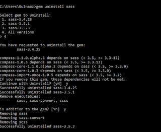 If you find the above error then uninstall the SASS using command : gem uninstall sass